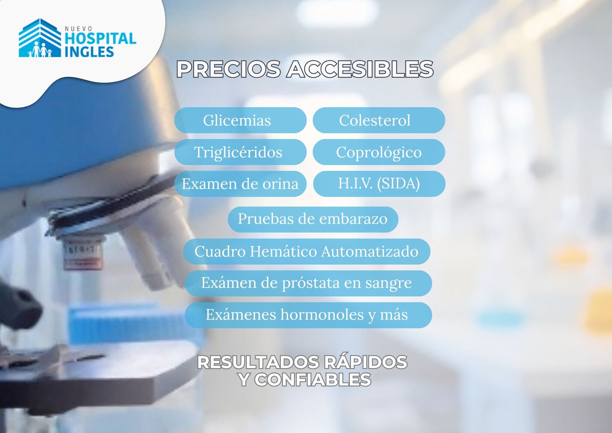 Hemograma I Glucosa I Funciones I Pruebas de infecciones I Colesterol y más.